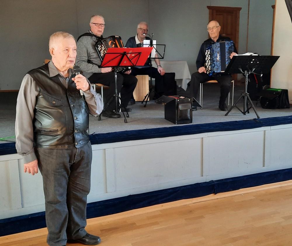 Joka tapauksessa tälläkin porukalla laulu raikui osaavien säestäjien tahdittamina. Tutut hanuristit Esko Holappa ja Jorma Jämsä säestivät ja uutena ryhmään tullut Hannu Hämälä rytmitti soitantaa omalla instrumentillaan ”rytmilaatikolla”. Komiasti soi poikien soittopelit.