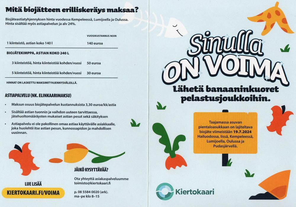 Kiertokaari on aloittanut Oulun ja lähiympäristön 290 000 asukkaan alueella biojätteen lajittelukampanjan.