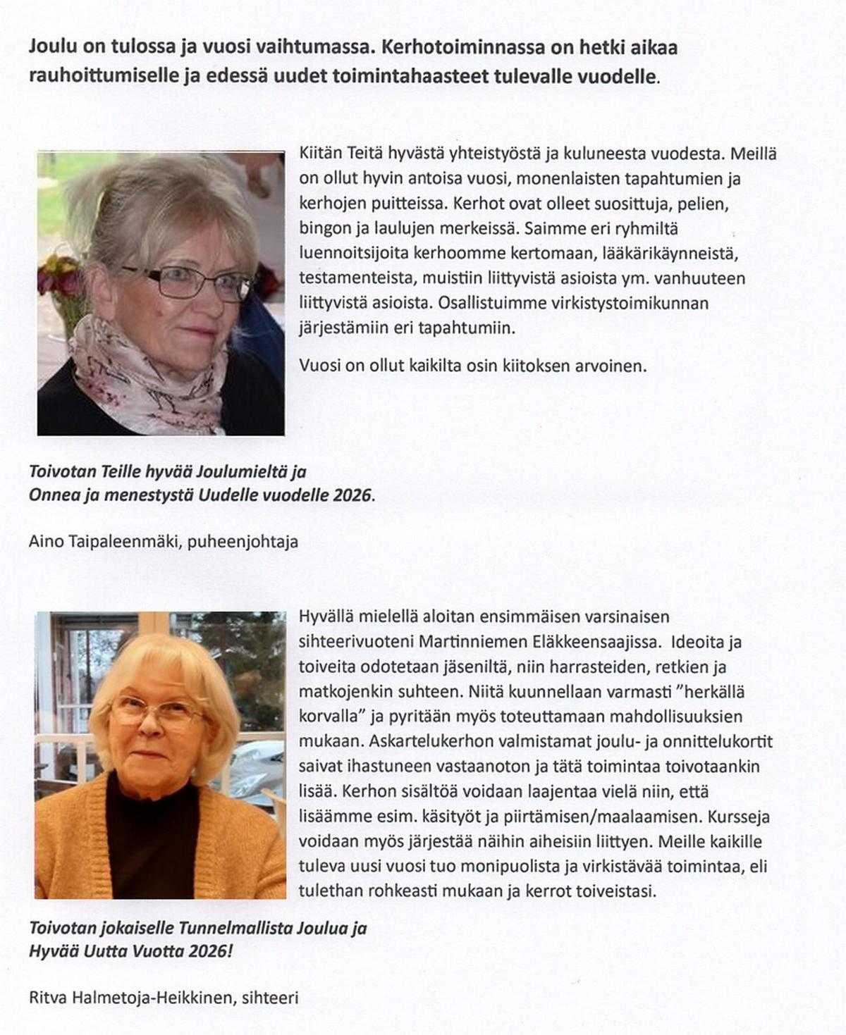 Martinniemen ja Haukiputaan eläkkeensaajien yhteinen Pikkujoulujuhla 13.12.