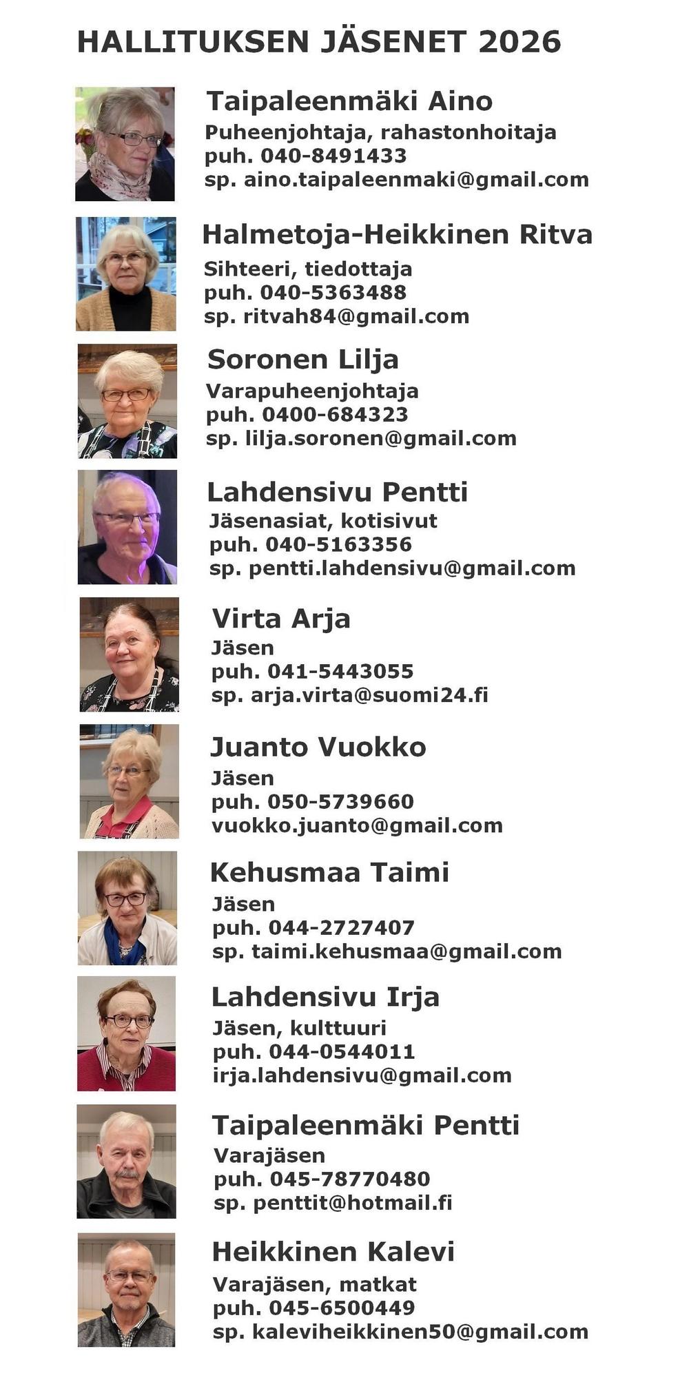 Martinniemen Eläkkeensaajien toimihenkilöt ja yhteystiedot v. 2026
