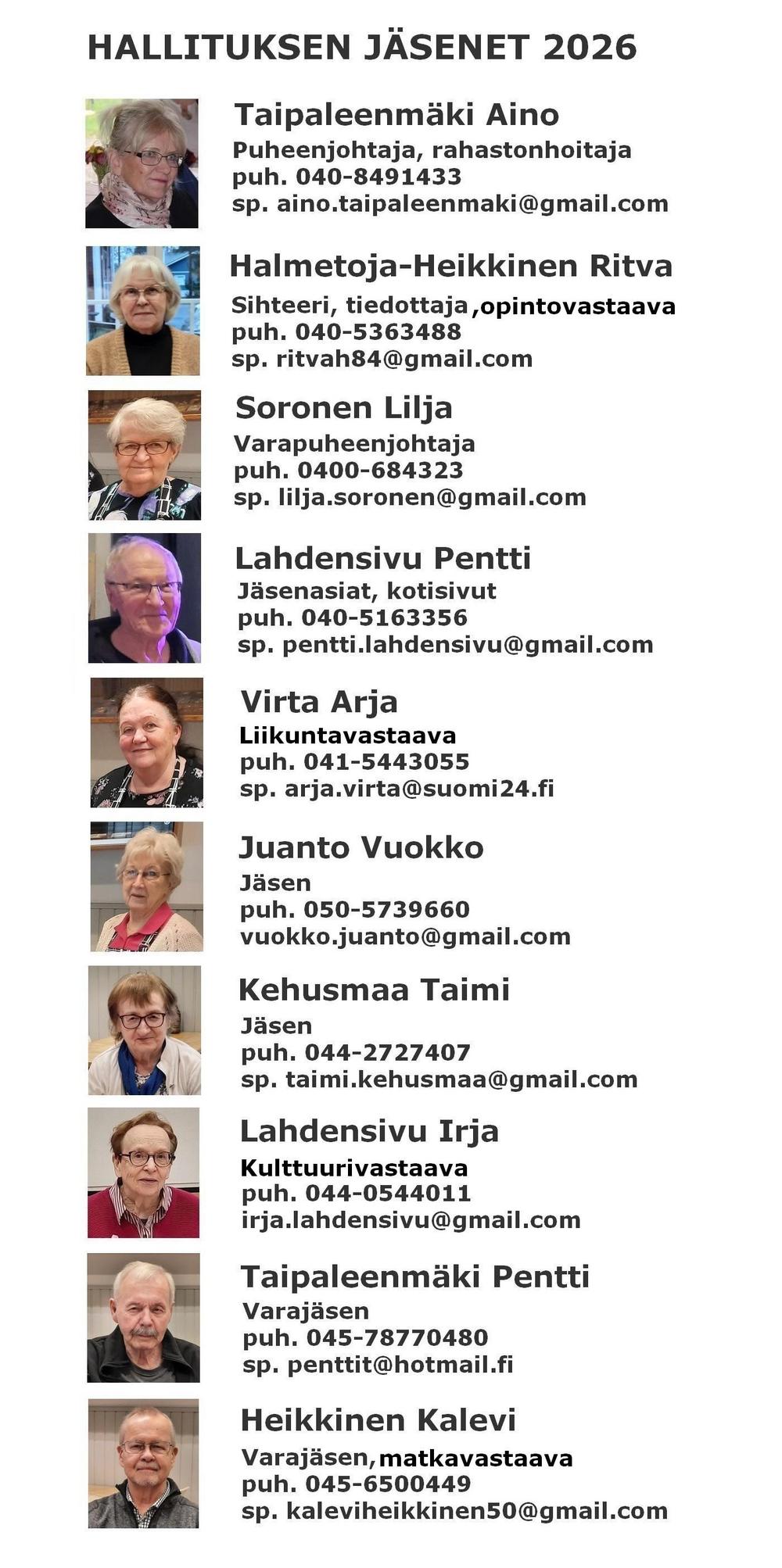 Martinniemen Eläkkeensaajien toimihenkilöt ja yhteystiedot v. 2026